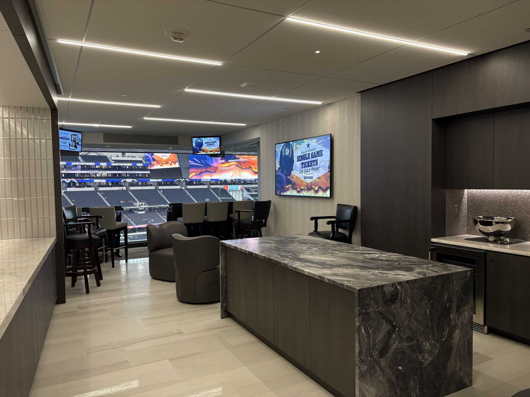 There are 10 private stadium clubs for Cowboys suite ticket holders at AT&T Stadium. Depending on which Cowboys suite you purchase, your access to certain clubs will vary. Most include cash bars, concessions and private restrooms. Optum and Owners Clubs are all-inclusive food and beverage.
