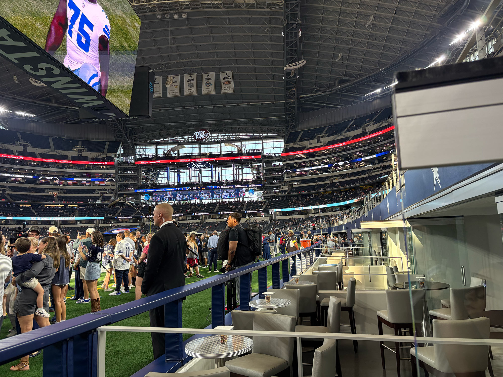 Exclusive access to the field club at midfield, a great place to see the players come out of the player tunnel to the field