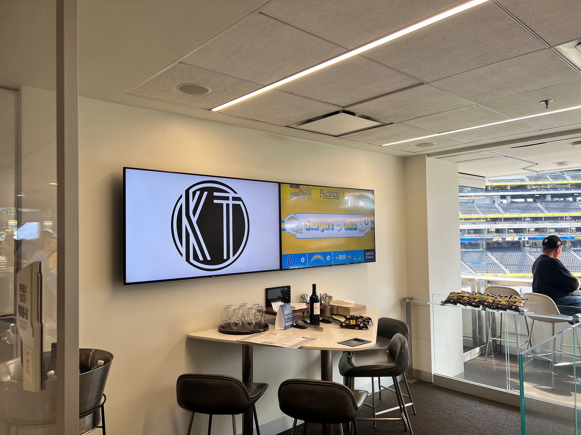 Los Angeles Rams suites at SoFi Stadium feature multiple 4K TV's with presentation capabilities. Conference space is available upon request with prior arrangements.