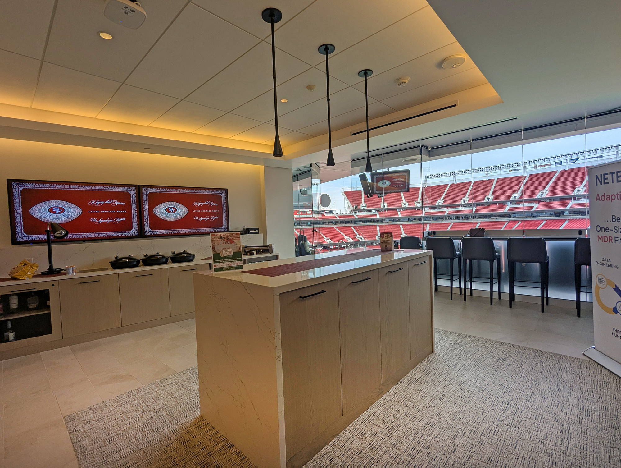 In-suite catering is available to purchase separately for San Francisco 49ers suite rentals. Citrix Owners Club Suites are the only suites that will come inclusive of catering for 49ers' football games. 49ers suites offer a large selection of premium food and drink provided by Levy Restaurants.