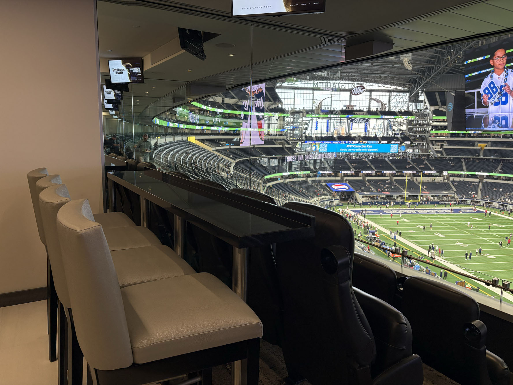 There is no formal dress code for the suite levels at AT&T Stadium. For corporate events, most suite patrons will dress in business casual attire; however, it's not uncommon for guests to wear casual clothing or team-branded apparel. All luxury boxes at AT&T Stadium are climate-controlled.